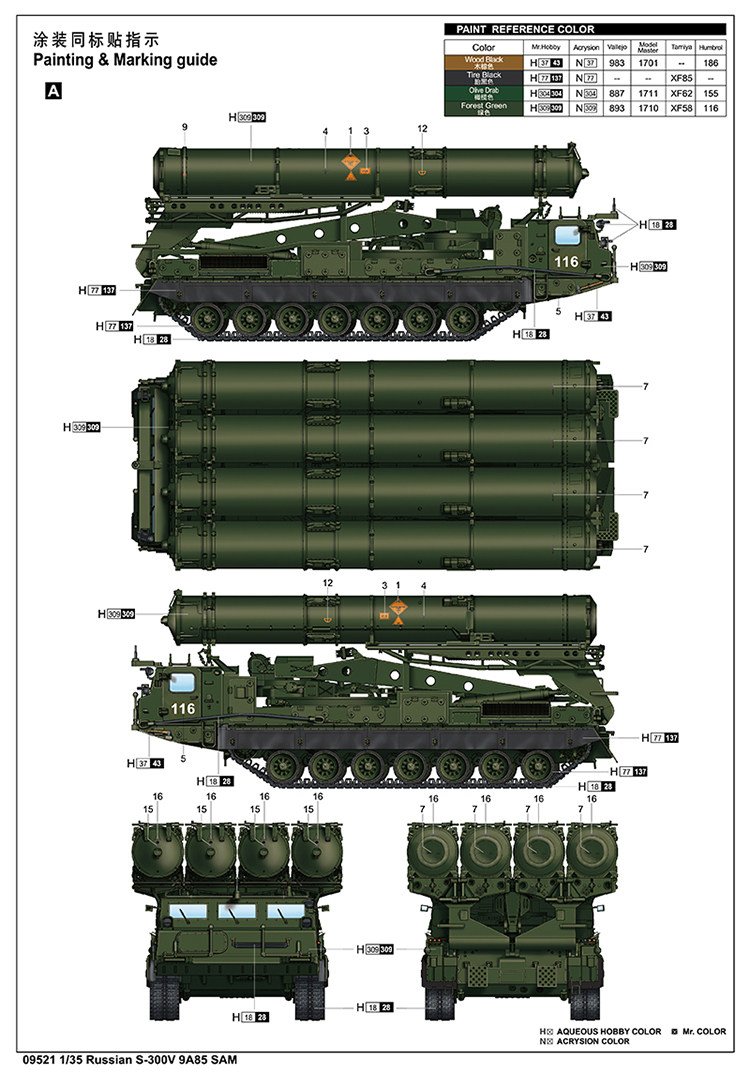 Trumpeter 09521 1:35 Russian S-300V 9A85 SAM Model Kit