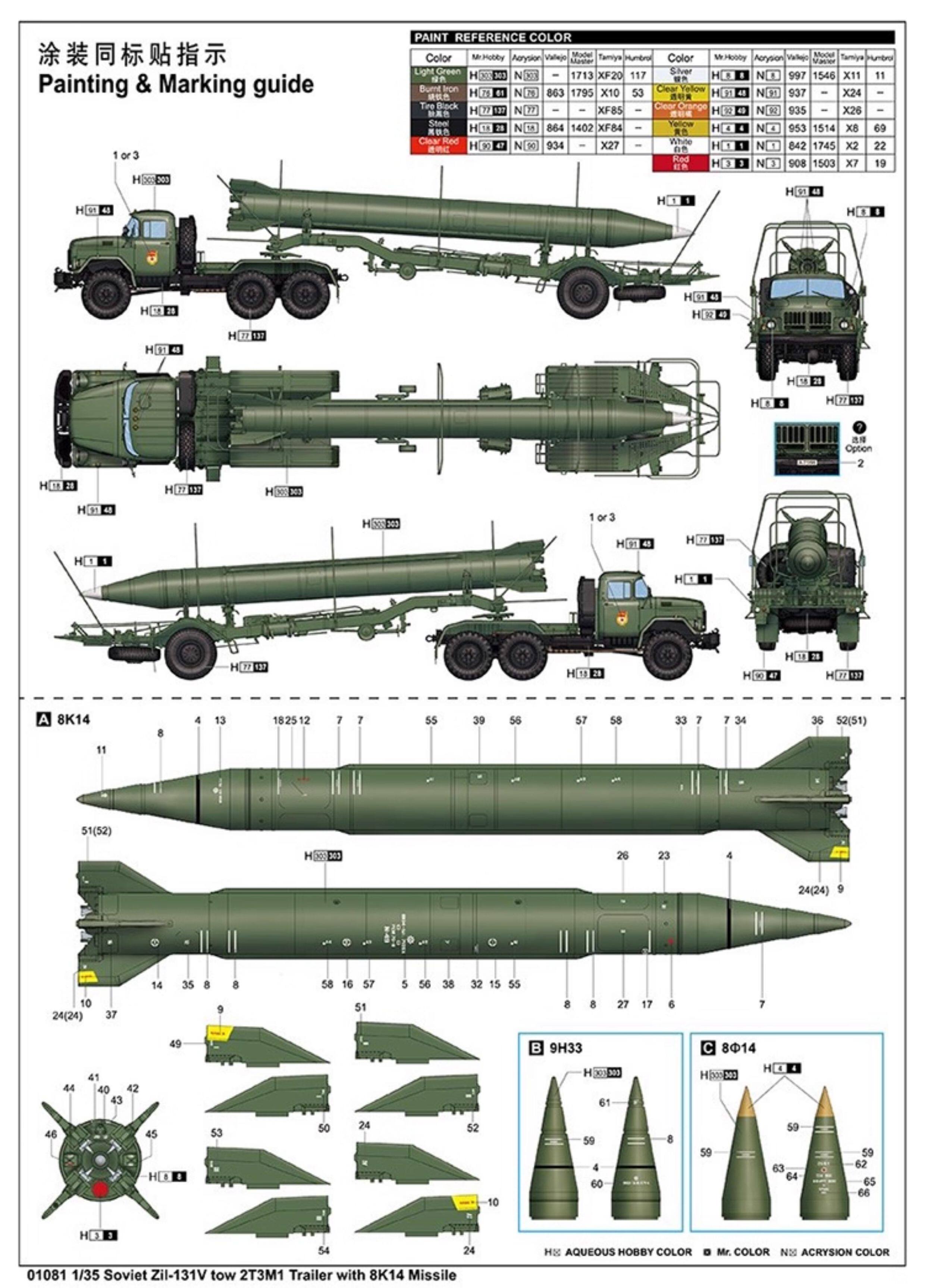 Trumpeter 1/35 01081 Soviet Zil-131V Tow 2T3M1 Trailer with 8K14 Missile